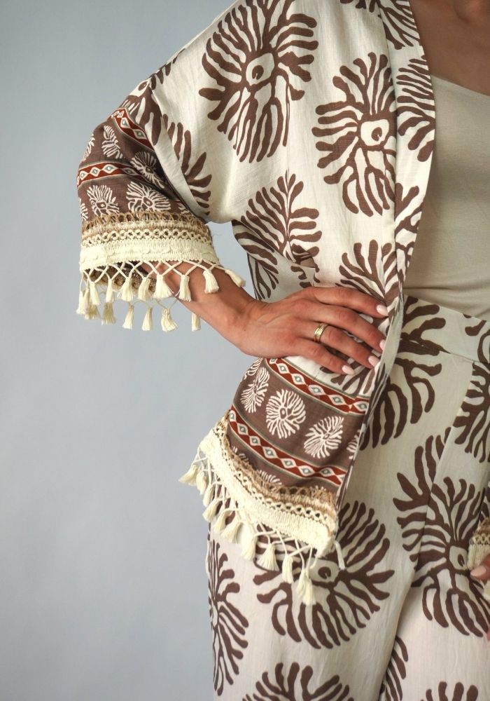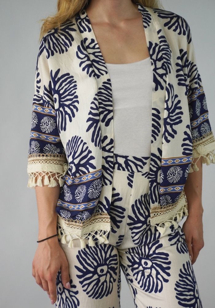 Κιμονό με φαρδιά 3/4 μανίκια και κρόσσια στο τελείωμα