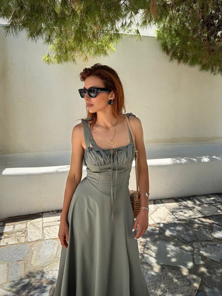 Το Olive Glow είναι ρομαντικό, θηλυκό και αέρινο — αυτό το φόρεμα σε απαλό λαδί χρώμα αγκαλιάζει τη σιλουέτα με κομψότητα. Με λεπτές τιράντες και καλοκαιρινό ντραπέ μπούστο, είναι ιδανικό για βόλτες στο νησί ή καλοκαιρινά event. Συνδυάζεται υπέροχα με φυσικά υλικά όπως ψάθινα αξεσουάρ και slides.