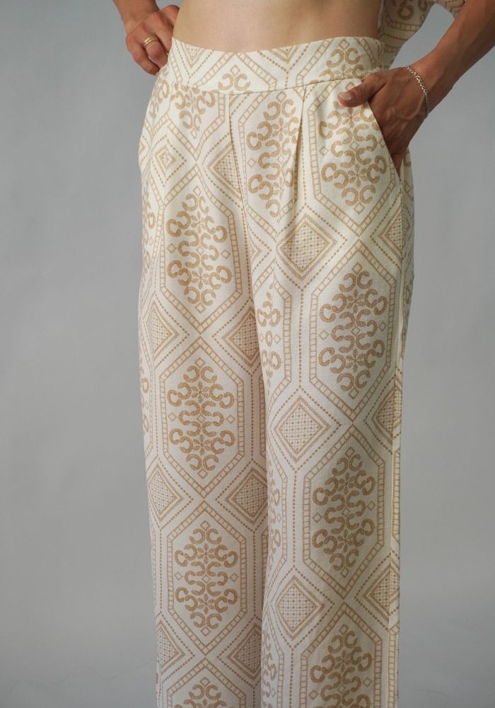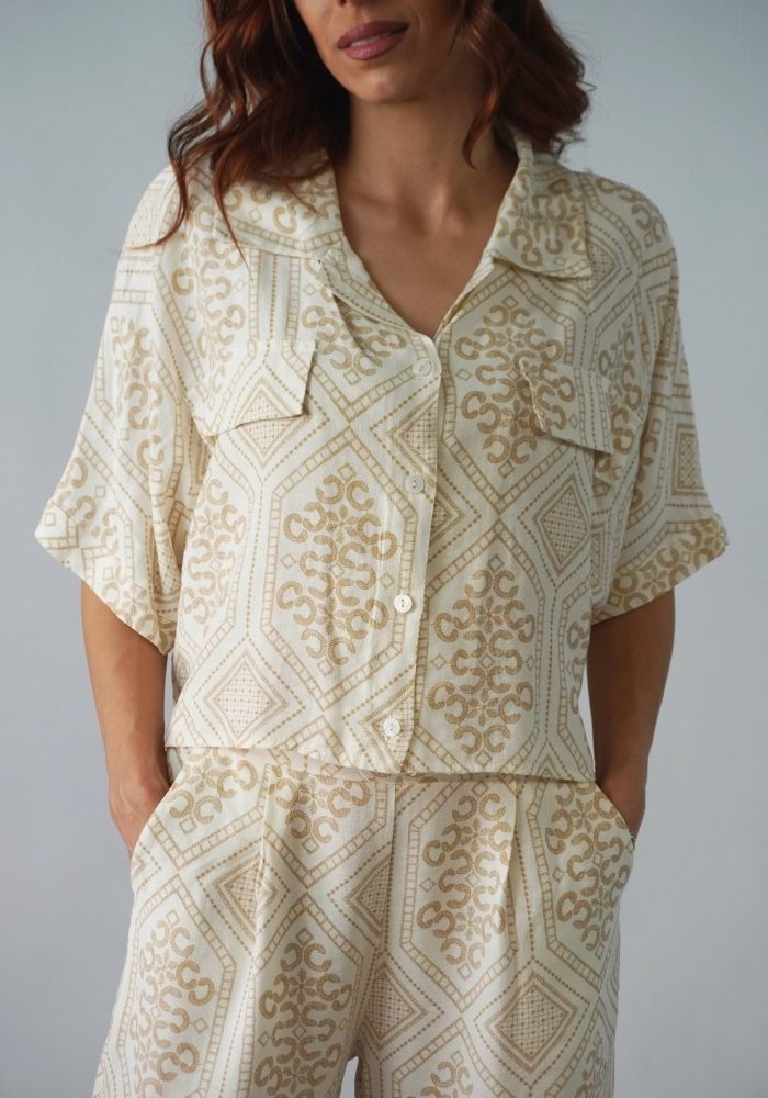 Το Sahara Set είναι Minimal αλλά με χαρακτήρα — αυτό το σετ σε off-white και χρυσές μπεζ αποχρώσεις είναι ό,τι χρειάζεσαι για effortless chic εμφανίσεις. Το πουκάμισο διαθέτει χαλαρή γραμμή με γιακά και τσέπη, ενώ το παντελόνι είναι ψηλόμεσο με άνετη εφαρμογή. Ιδανικό για την πόλη, το νησί ή και mix & match styling.